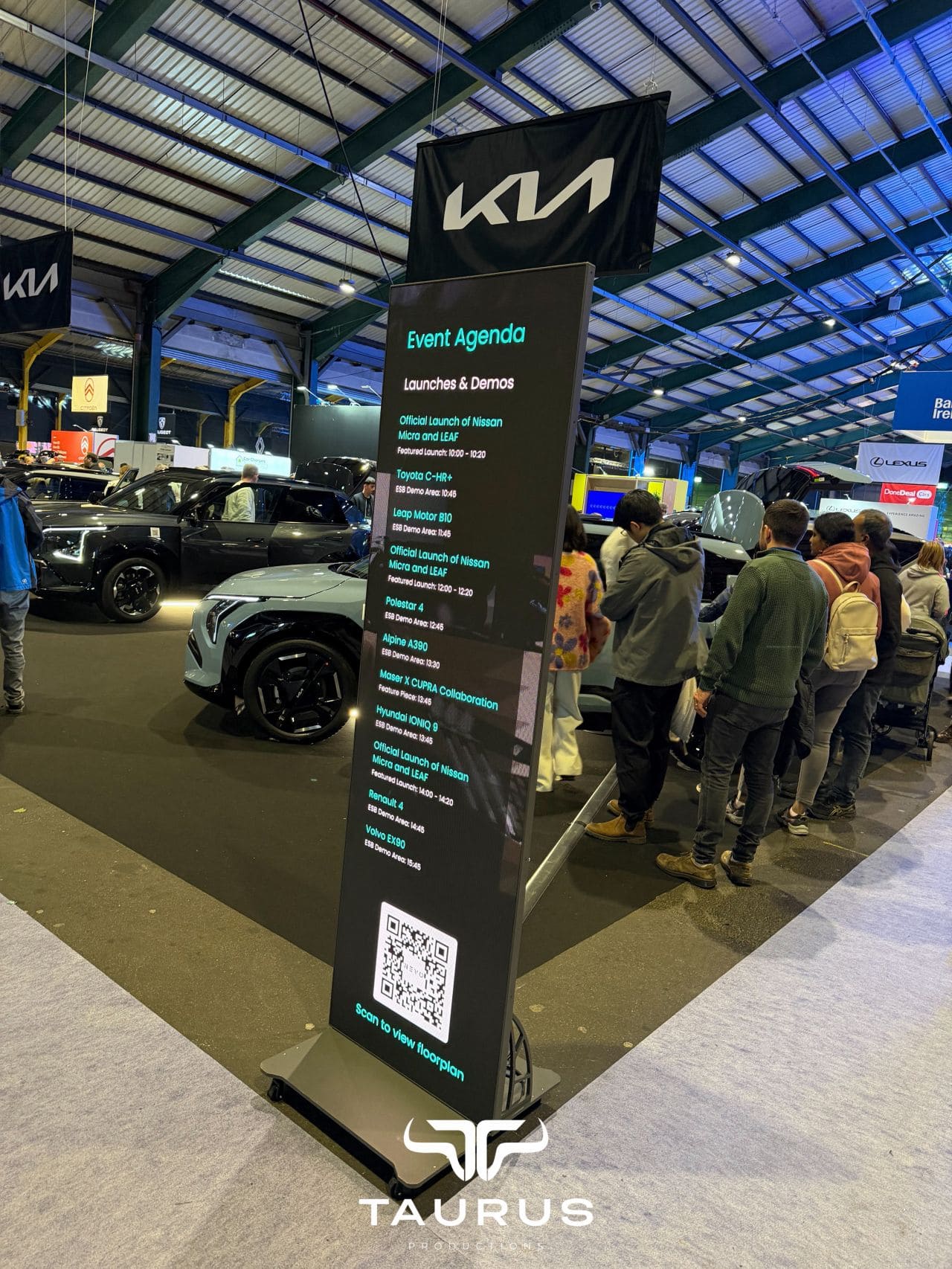 Nevo partnered with Taurus Productions to deliver Ireland’s largest electric vehicle show – a multi-hall public exhibition requiring reliable AV, lighting, staging, and crowd-flow management at scale.